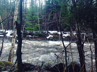 Celle-là, c'est au chalet. Depuis un mois et demi, il pleut des cordes ! Samedi passé, il faisait beau. Alléluia, Namasté, Amen et Agus Deï ! C'était pas croyable ! Alors à 6 heures 30, nous étions dehors ! Le printemps est pluvieux et nuageux. Mais nous sommes en santé alors...